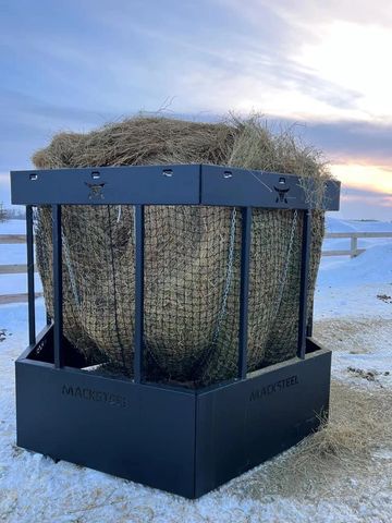 This "Sandland Style" on-ground feeder is completely built out of round pipe to eliminate any chance of mane wear. All of the pipes are capped, which provides an open top for easy bale insertion.
